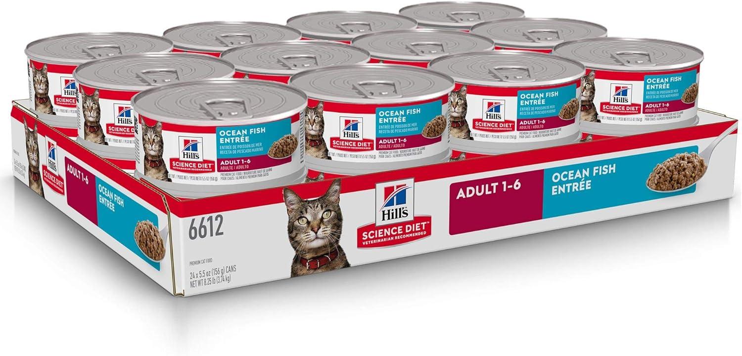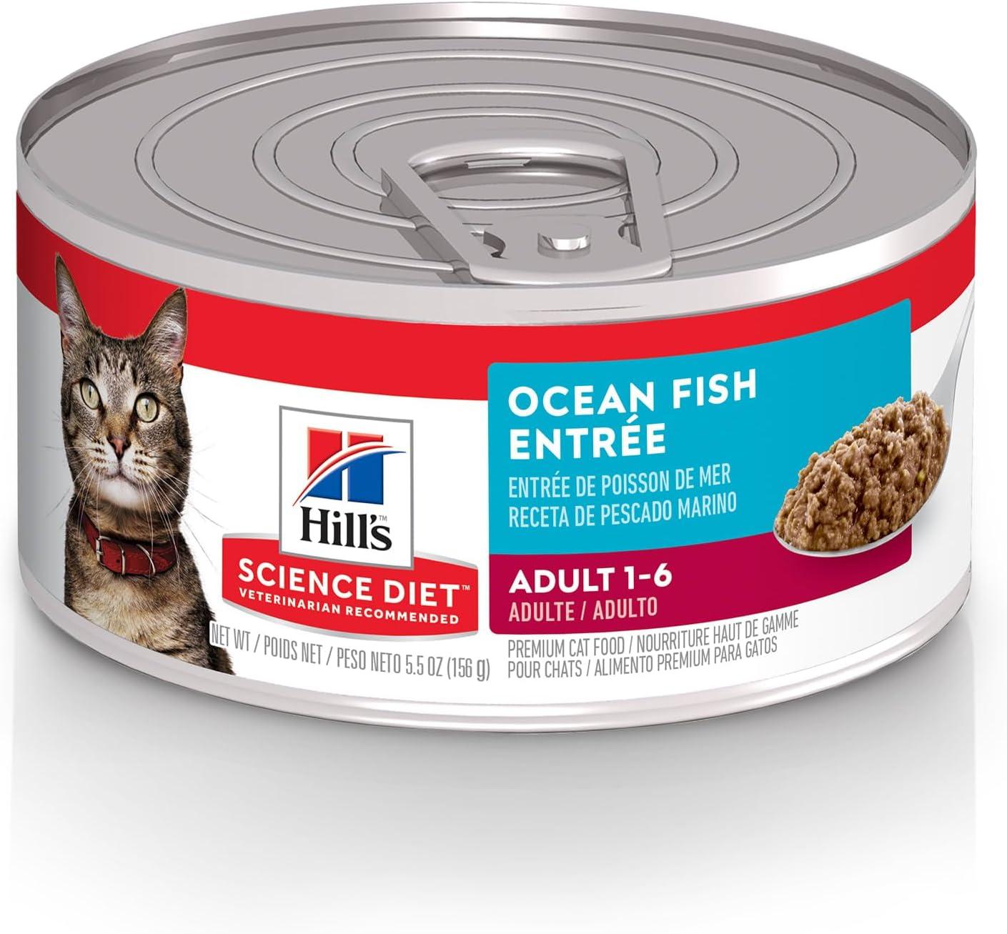Hill’s Science Diet Adult 1-6, Adult 1-6 Premium Nutrition, Wet Cat Food, Variety Pack: Tuna; Chicken; Ocean Fish Stew, 5.5 oz Can Variety Pack, Case of 12(Ocean Fish Minced)